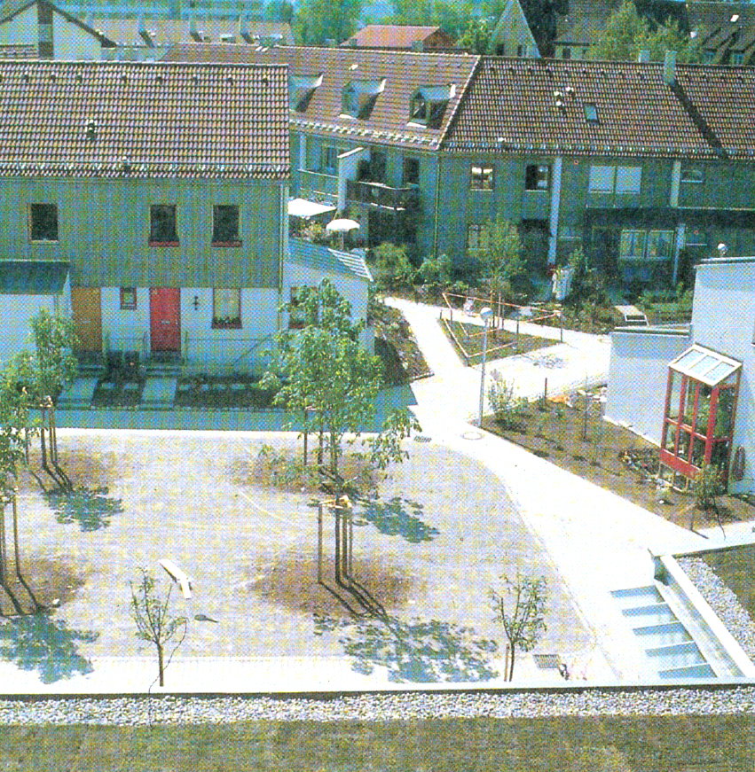 Die vier Wohnhöfe als städtebauliche Ergänzung in einem gewachsenen innerstädtischen Gebiet sind gegen Verkehrslärm gut geschützt. Der fließende und ruhende Verkehr ist am Rande des Gebietes in Gemeinschaftsgaragen, auf Stellplätzen und in einer Tiefgarage gesammelt.